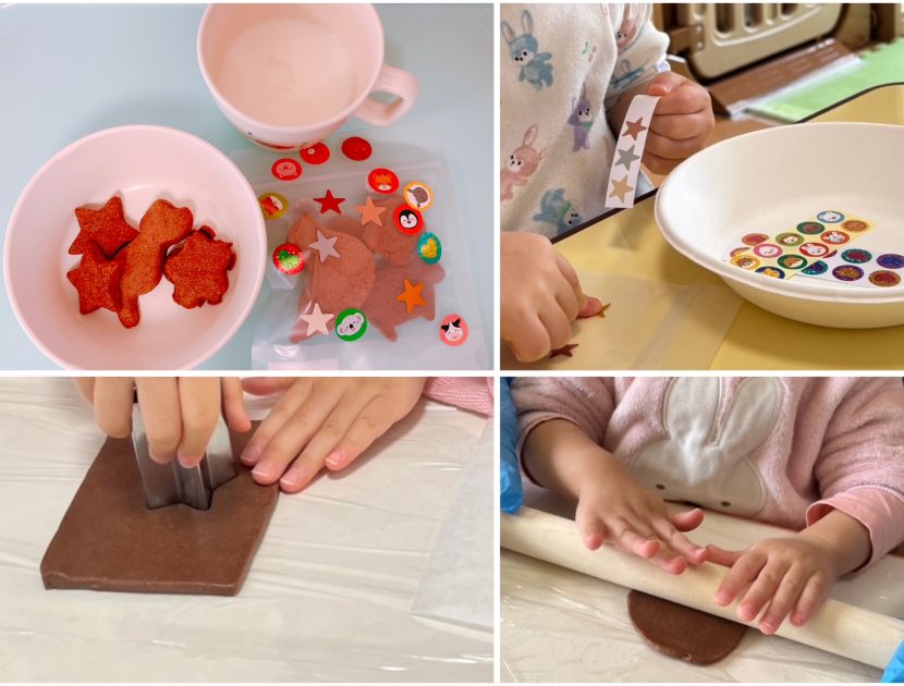 2歳児さんは生地を伸ばすところからやってみましたが上手に伸ばすことができました!